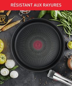 - RÉSISTANCE AUX RAYURES : le revêtement antiadhésif Titanium 6X dure jusqu’à 6 fois plus longtemps (par rapport au revêtement standard de Tefal) grâce à un renforcement par des cristaux ultra-durs Antiadhésif sûr, sans PFOA, sans plomb, sans cadmium