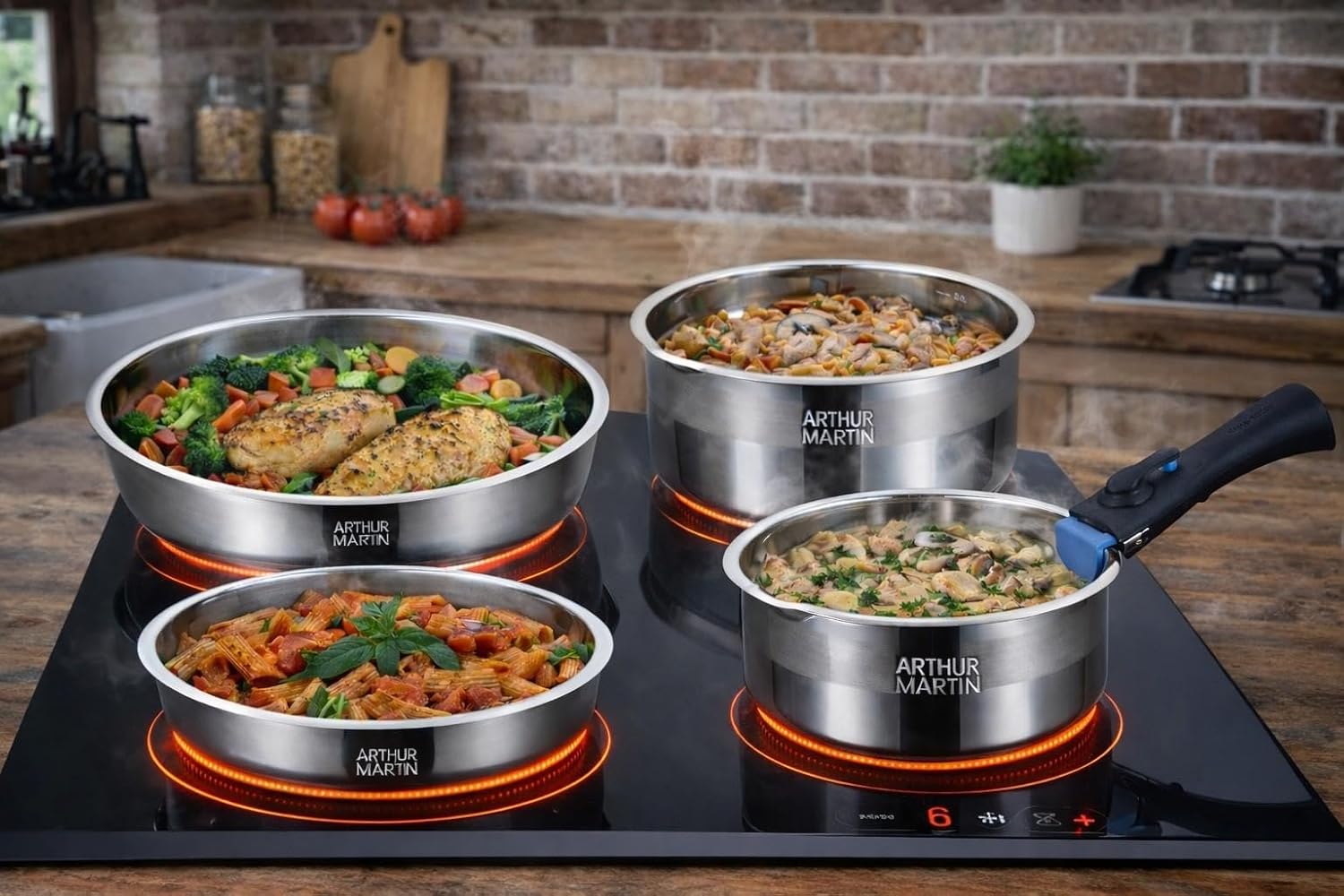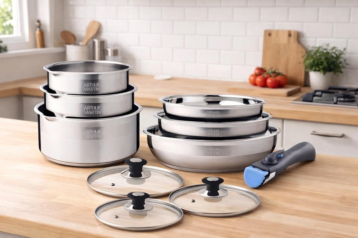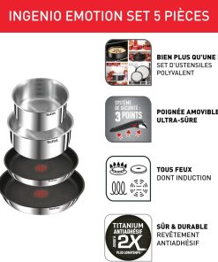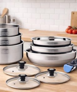 - Finitions de qualité supérieure : Avec des casseroles et poêles en acier inoxydable, cette batterie de cuisine offre une esthétique élégante et professionnelle qui rehausse votre expérience culinaire tout en garantissant une robustesse à toute épreuve pour une utilisation quotidienne sans compromis sur la qualité