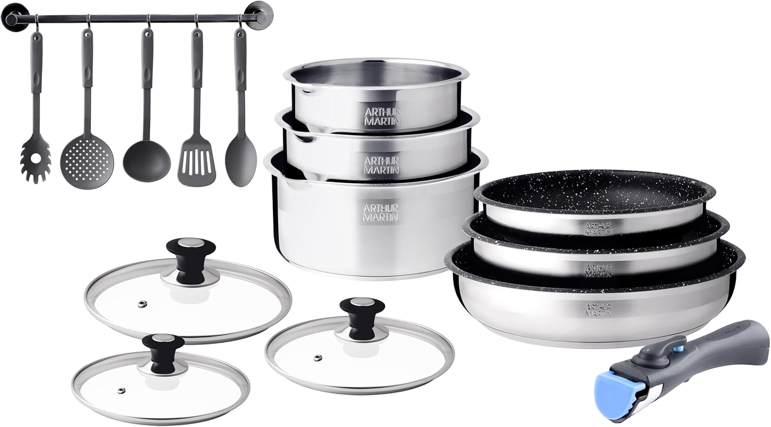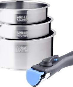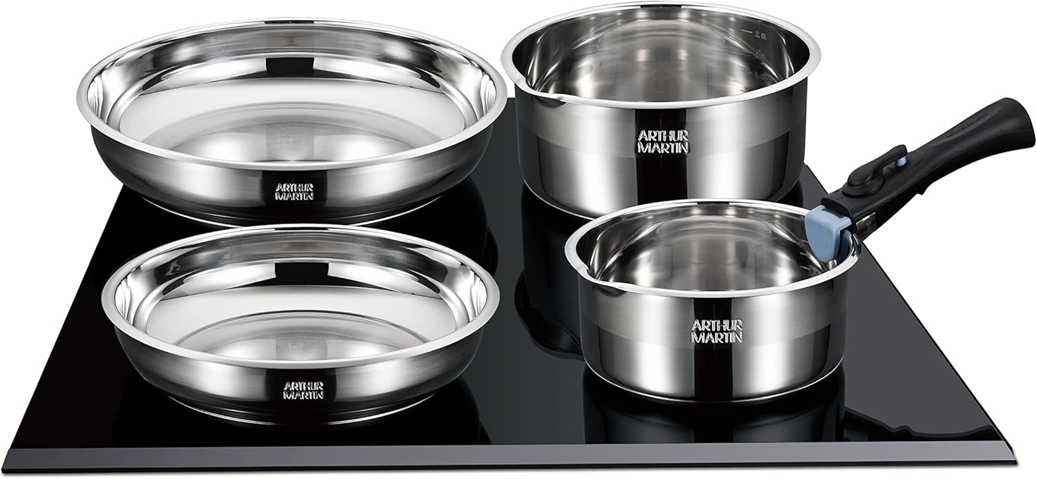 Découvrez la batterie de cuisine Arthur Martin, un ensemble de 10 pièces alliant élégance et performance. Composée de casseroles de 16, 18 et 20 cm, ainsi que de poêles de 20, 22 et 26 cm, cette gamme en acier inoxydable satiné est conçue pour les chefs en herbe et les professionnels. Les couvercles adaptés et les poignées amovibles offrent une flexibilité inégalée. Sans revêtement anti-adhérent, l'inox garantit une cuisson saine tout en préservant les saveurs naturelles des aliments. Grâce à l'échelle de graduation intégrée, dosez vos ingrédients avec précision. Compatible avec tous les types de feux, y compris l'induction, cette batterie est le choix idéal pour une cuisine quotidienne réussie. Optez pour la qualité professionnelle avec Arthur Martin.