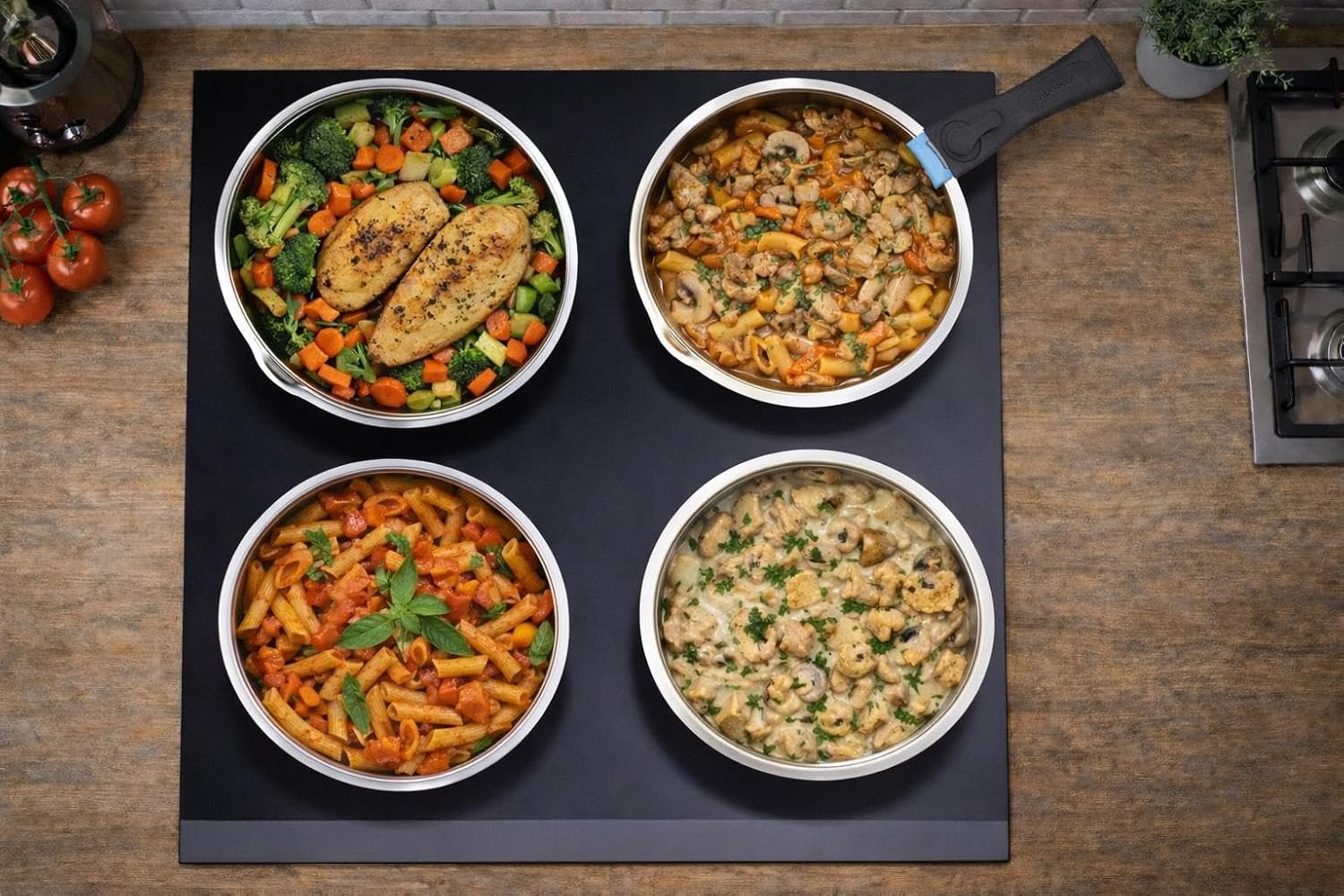 - Conservation des saveurs : L'acier inoxydable est idéal pour les cuissons mijotées ou à l'étouffée, car il préserve le goût et l'aspect naturel des aliments. Grâce à une diffusion homogène de la chaleur, vos plats conservent leur richesse et leur authenticité, vous permettant de savourer chaque bouchée comme un vrai chef