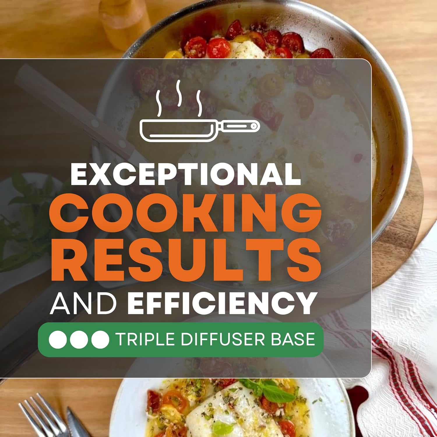 - ACIER INOXYDABLE: Fabriquée en acier inoxydable 18/10 avec triple fond diffuseur pour une répartition homogène de la chaleur.