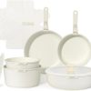 Très satisfait de cet ensemble NutriChef 22 pièces en marbre marron : les casseroles et poêles chauffent rapidement, l’antiadhésif tient bien et l’ensemble fonctionne parfaitement sur induction. Les ustensiles sont résistants à la chaleur, la prise en main est confortable et le nettoyage est simple, un excellent rapport qualité/prix pour une collection pro.