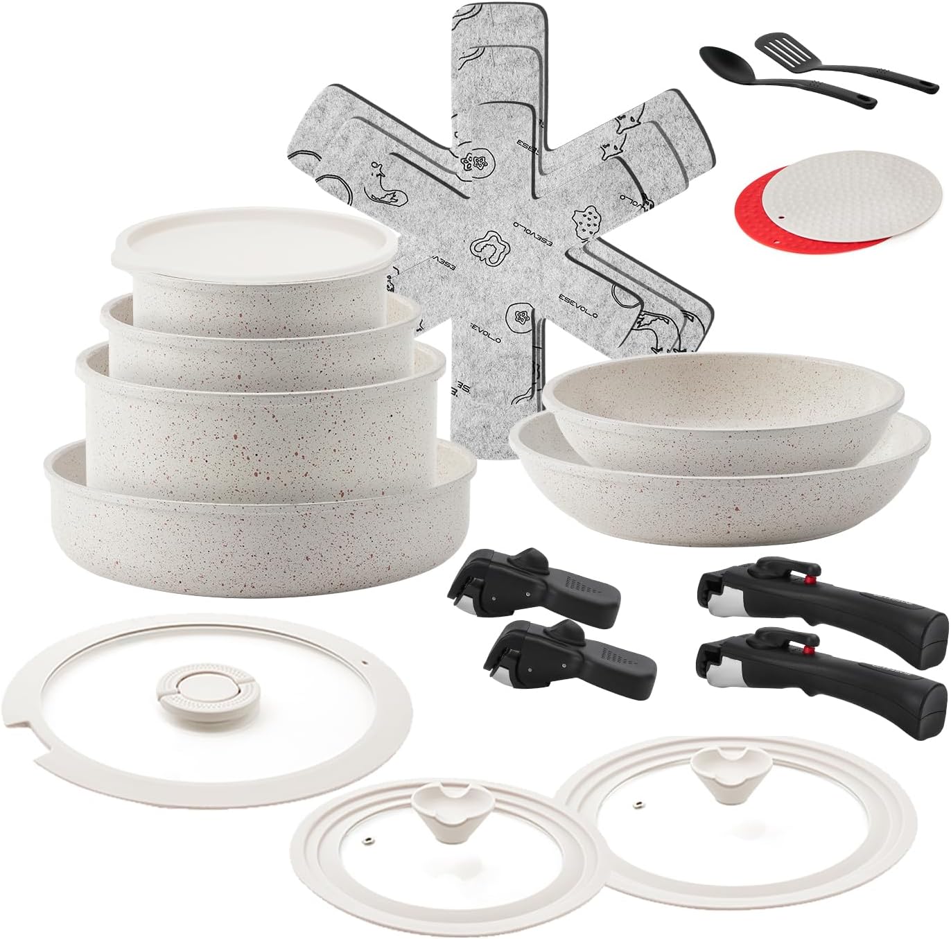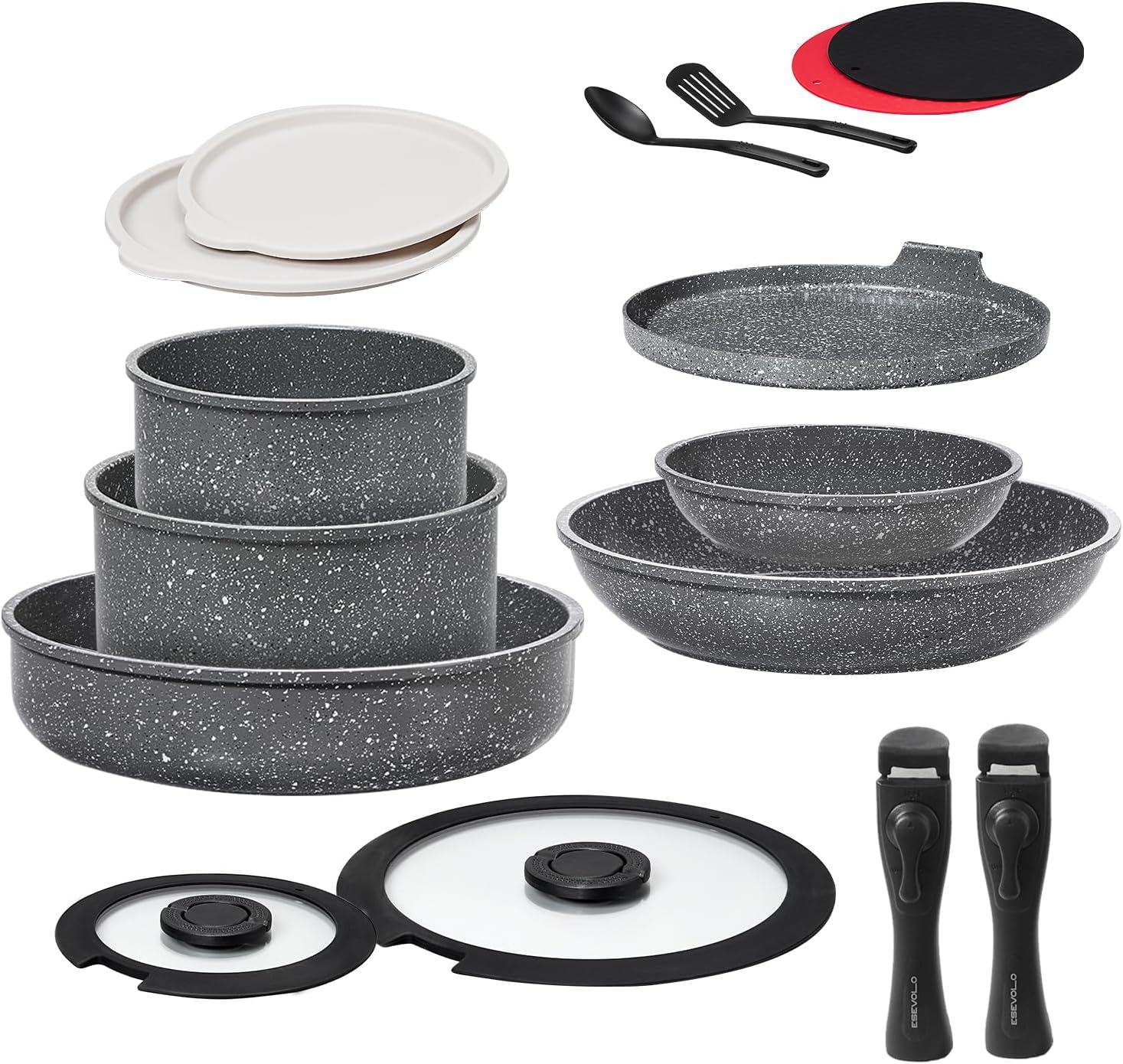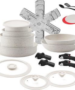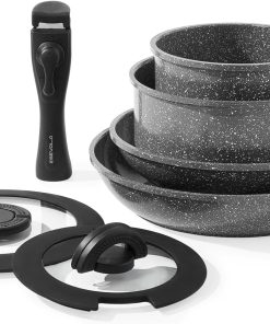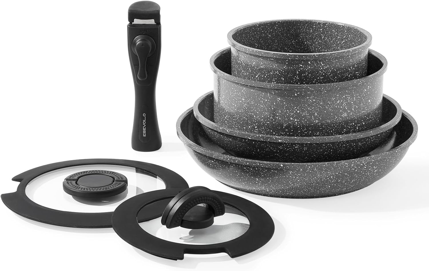 - Empilable et peu encombrant : Grâce aux poignées amovibles et au design empilable, cette batterie de cuisine économise jusqu'à 70 % d'espace de rangement. Elle est également légère et facile à transporter, parfaite pour la cuisine ou le camping