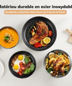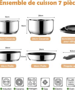 - Casseroles en acier inoxydable pratiques et durables : Fabriqué en acier inoxydable résistant à la chaleur et à la corrosion, avec une longue durée de vie et lavable au lave-vaisselle. Ce set convient à tous les types de feux, y compris les plaques à induction, et est également résistant au four jusqu’à 240 ℃