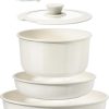 - Set de cuisson 7 pièces : Le set de casseroles et poêles comprend 2 poêles (20 cm/26 cm), 2 casseroles (16 cm/20 cm), 2 couvercles hermétiques (16 cm/20 cm) et 1 poignée amovible