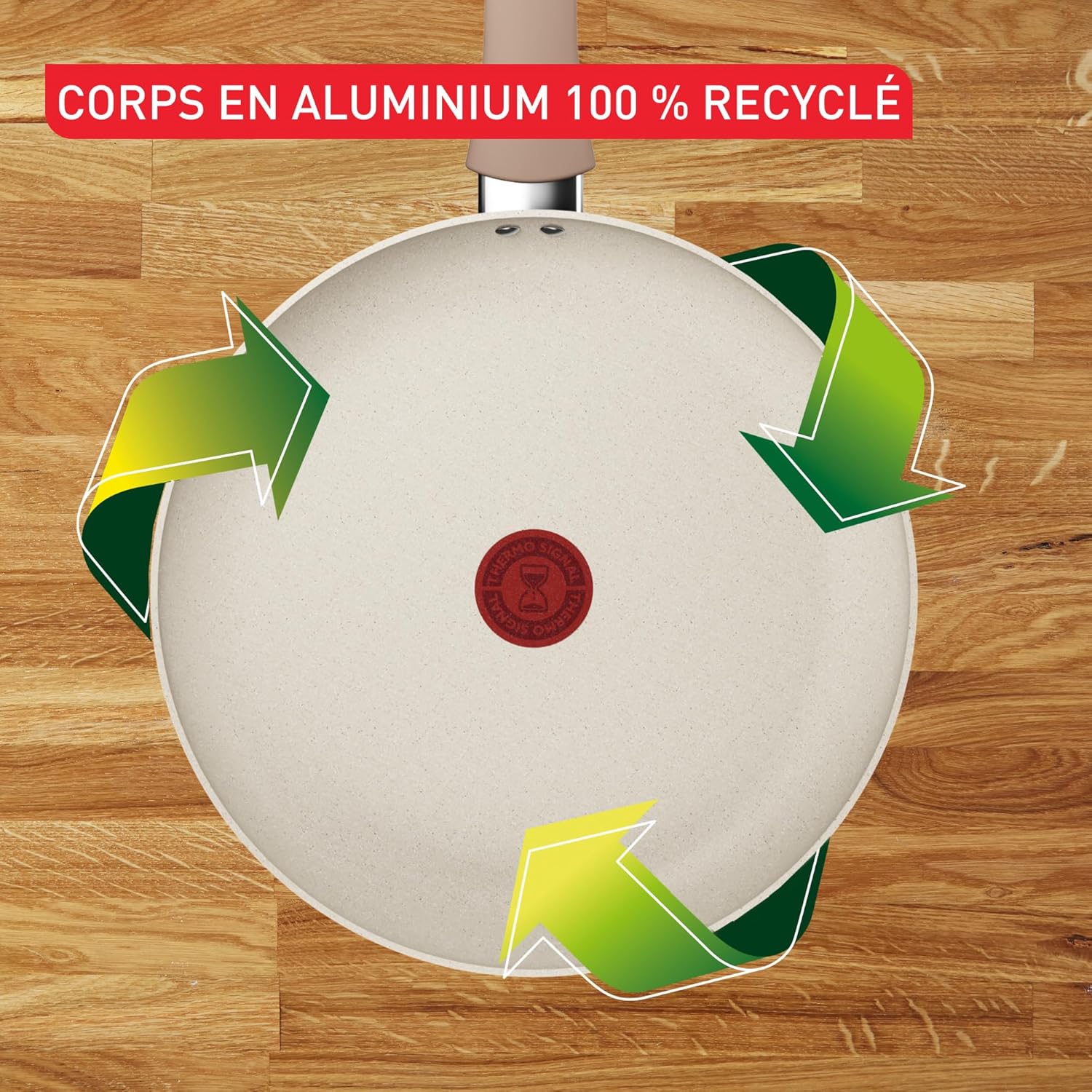 - CORPS EN ALUMINIUM 100% RECYCLÉ: corps en aluminium 100% recyclé, métal pouvant être recyclé et emballage avec 90% de fibres recyclées conformément à l'approche d'écoconception de Tefal