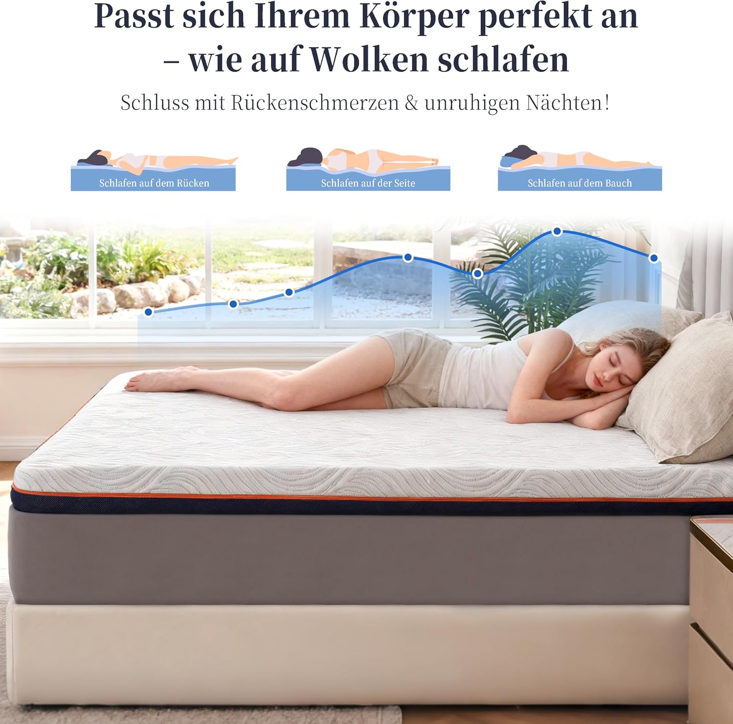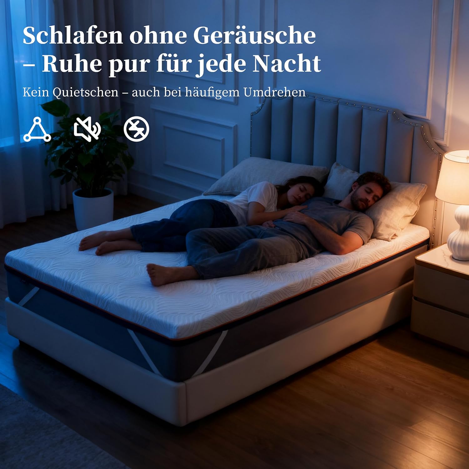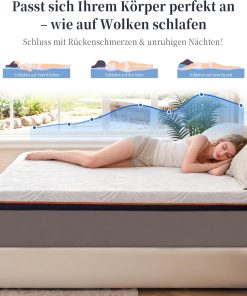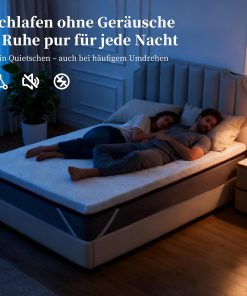 - 2️⃣ Mousse Gel Infusé & Surmatelas Respirant La mousse gel thermostatique aide à réguler naturellement la température corporelle afin d’éviter la surchauffe. La structure ventilée et perforée du surmatelas 160×200 améliore la circulation d’air et garde une sensation de fraîcheur toute la nuit, même en été.