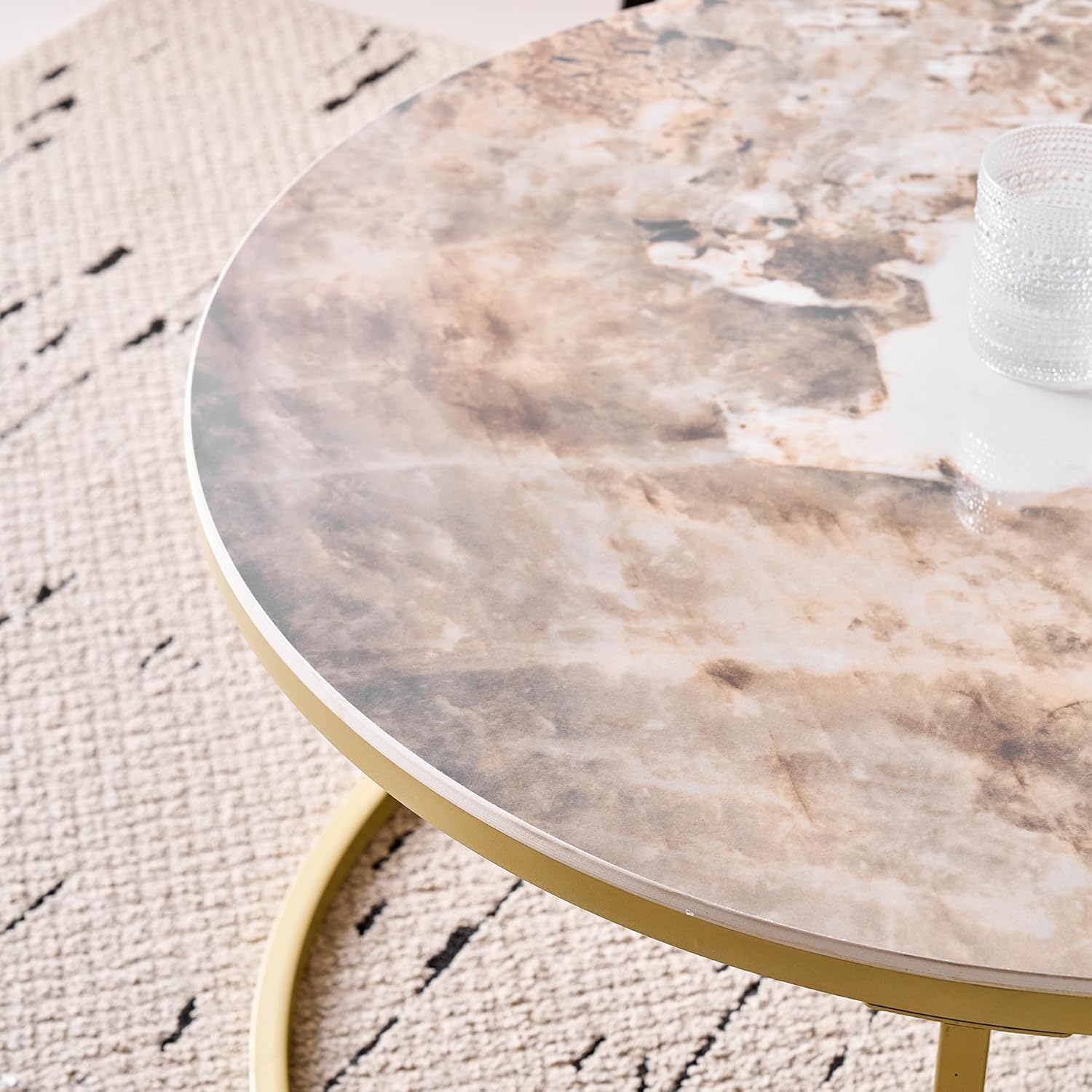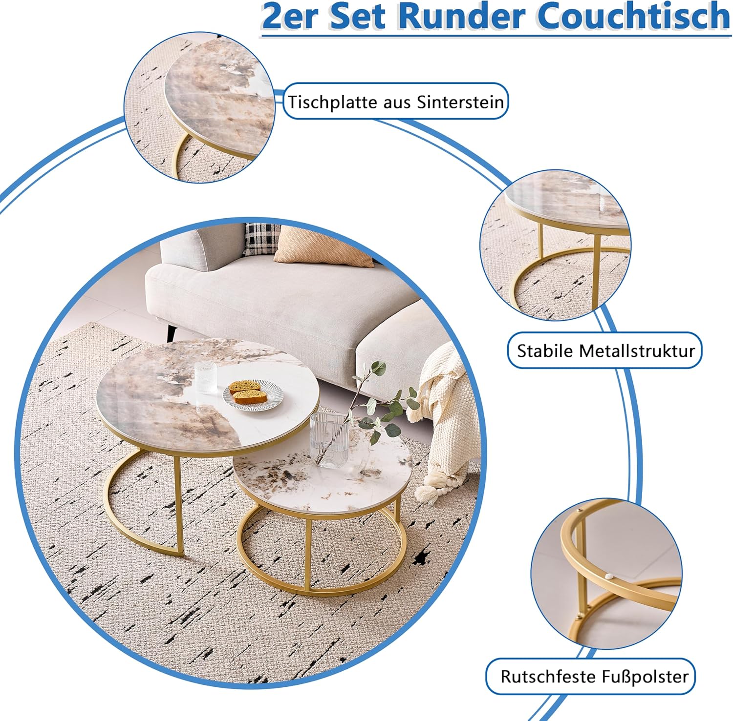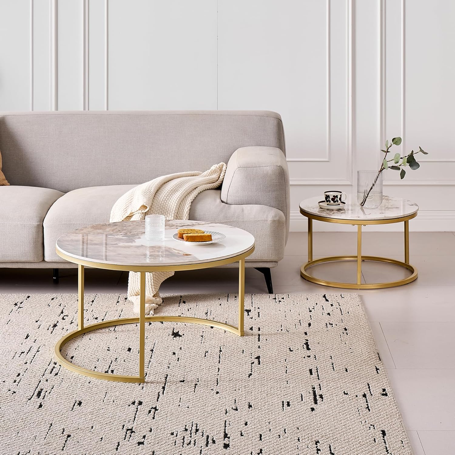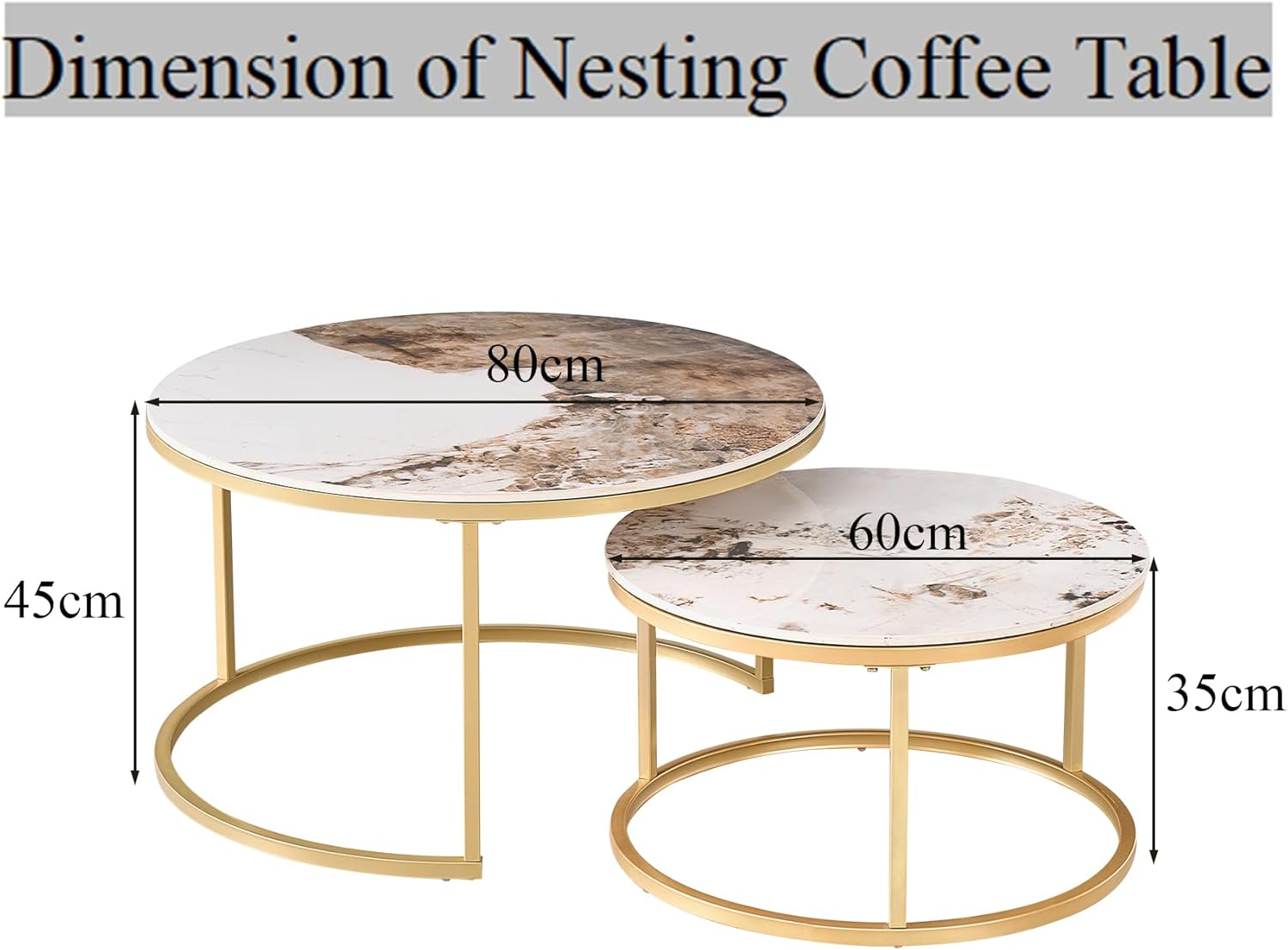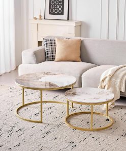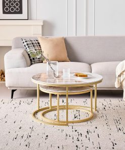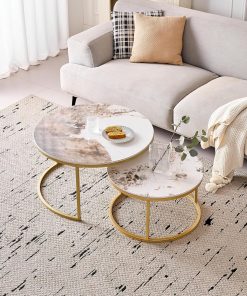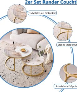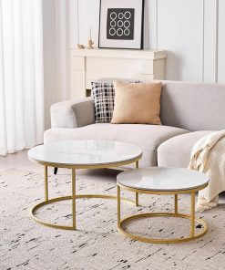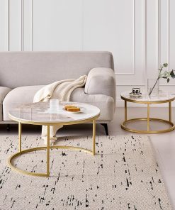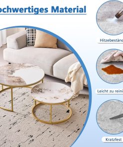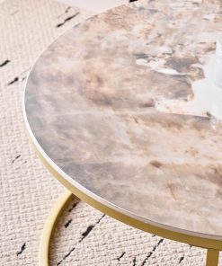 Lot de 2 Tables Basses Gigognes Ronde avec Plateau en Céramique Technique (Non en MDF),Tables D’Appoint Idéal pour Salon, Chambre, Balcon (Pandora+Or), 60+80cm