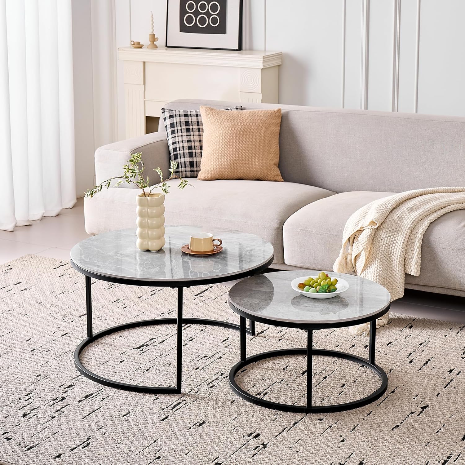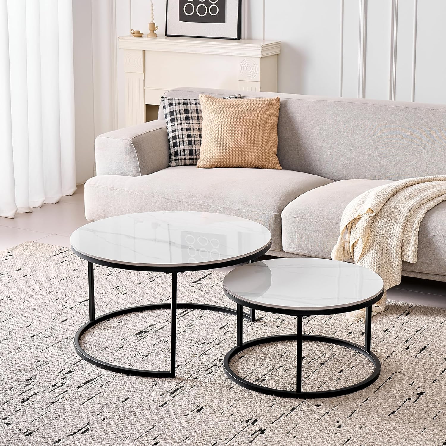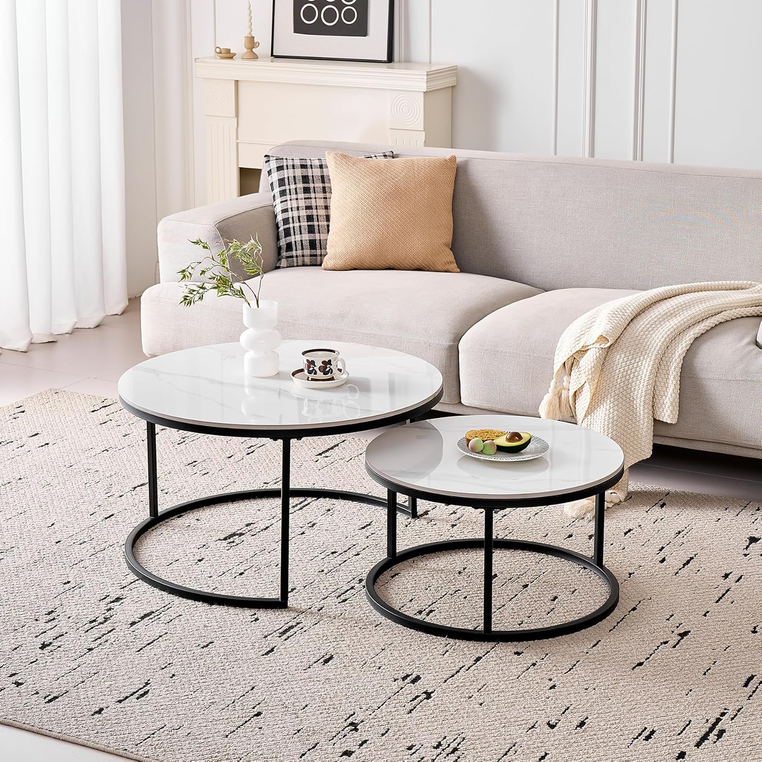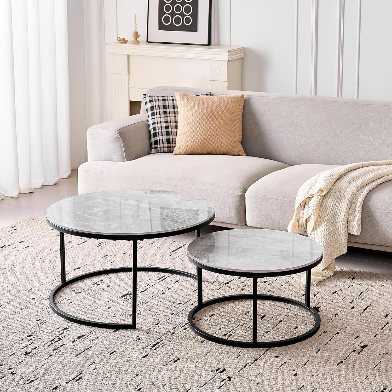 Lot de 2 Tables Basses Gigognes Ronde avec Plateau en Céramique Technique (Non en MDF),Tables D’Appoint Idéal pour Salon, Chambre, Balcon (Pandora+Or), 60+80cm