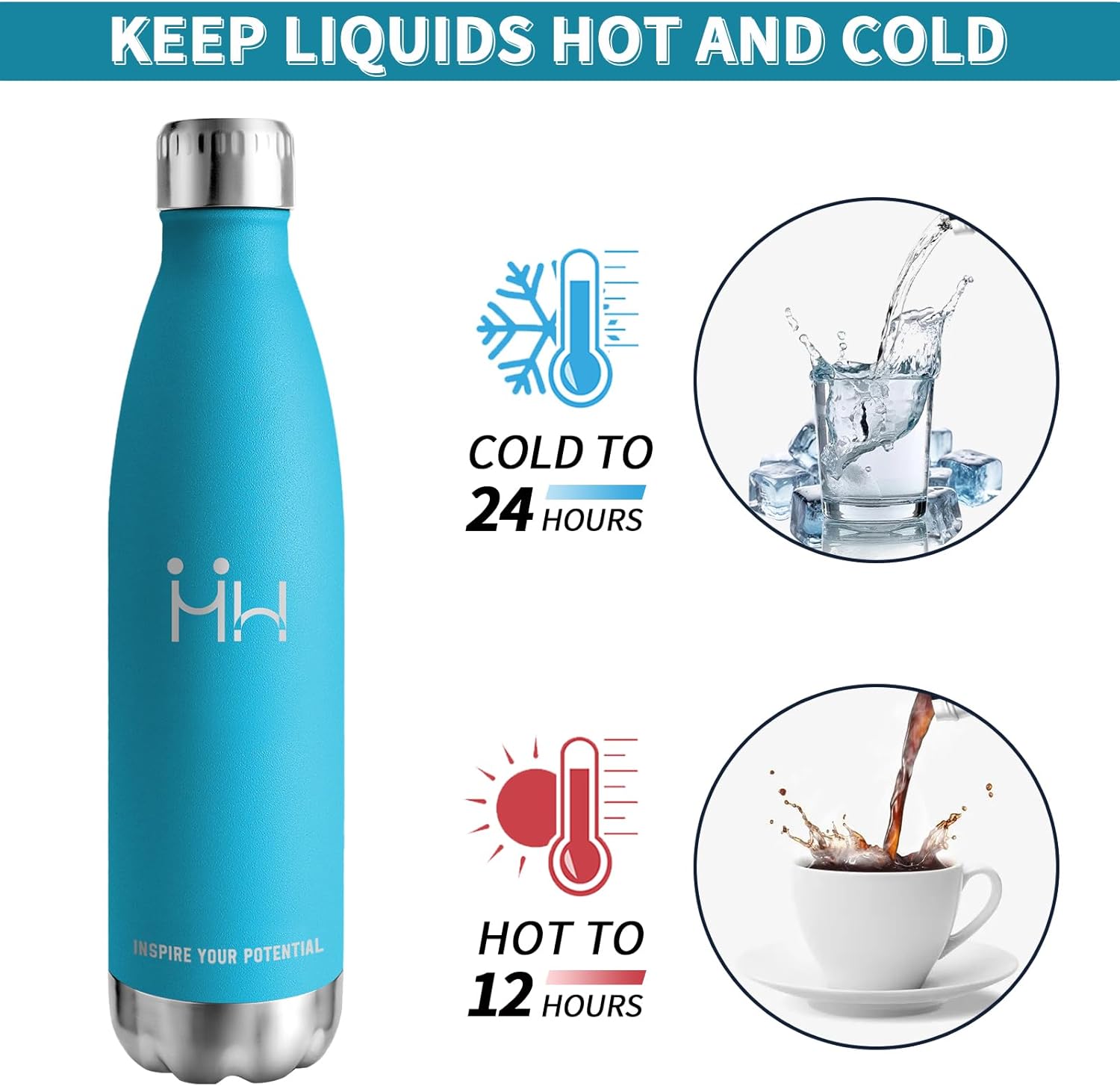 - 💧TECHNOLOGIE D’ISOLATION À DOUBLE PAROI: Grâce à l’isolation sous vide à double paroi, les boissons restent chaudes jusqu’à 12 heures ou froides jusqu’à 24 heures! et dégustez des boissons chaudes aromatiques ou des rafraîchissements frais partout.
