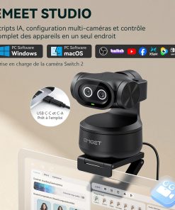 - Logiciel de contrôle EMEET STUDIO – Les fonctionnalités sont facilement contrôlables via EMEET STUDIO. Les positions prédéfinies changent instantanément d'angle ; un réglage précis assure un cadrage parfait. Le mode tableau blanc détecte automatiquement les tableaux grâce à un réglage manuel ; aucun autocollant n'est nécessaire. Le mode confidentialité s'active par inclinaison, minuterie ou application. Le champ de vision s'ajuste en 1080p et 2K 30 ips ; il est verrouillé en 4K 30 ips et 1080p 60 ips pour plus de stabilité. L'AIGC intégré crée des listes de prises de vue et des mouvements. Webcam 4K et caméra podcast idéales pour les créateurs fatigués de gérer plusieurs appareils.