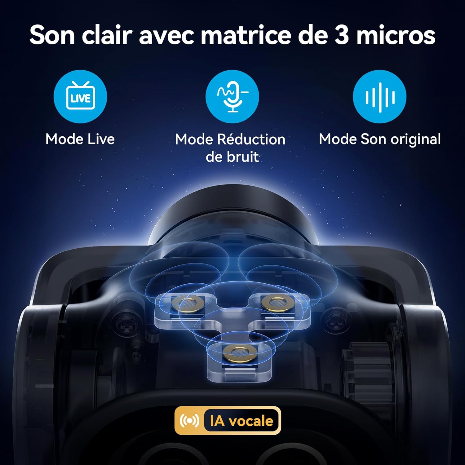 - Réseau de 3 microphones pour plusieurs scènes – La caméra PTZ EMEET PIXY utilise un réseau de trois microphones pour un son cristallin. Le mode Live filtre les bruits constants, comme les ventilateurs et la climatisation, pour des diffusions en direct fluides. Le mode antibruit bloque les bourdonnements constants et les bruits soudains, comme les clics de clavier ou les claquements de porte, pour des podcasts, des cours et des enregistrements. Le mode Son Original capture tous les détails ambiants pour la musique et le chant. Grâce à ses multiples modes d'enregistrement, la webcam de streaming PIXY offre une polyvalence digne d'un studio sans micro supplémentaire.