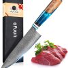 - 【Acier Damas de Haute Qualité】Fabriqué en acier Damas de haute qualité 10Cr15CoMoV à 67 couches, Il adopte un traitement thermique sous vide, et la dureté peut atteindre 62HRC. Il présente également les caractéristiques de résistance à la corrosion, de prévention de la rouille et de forte ténacité. Le motif unique de l'acier de Damas met en valeur un savoir-faire et une beauté artistique incroyables.