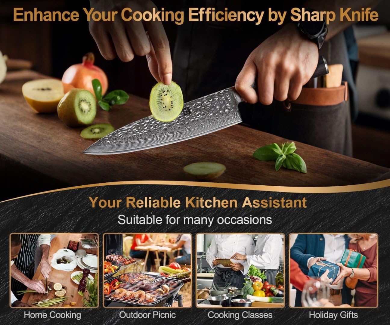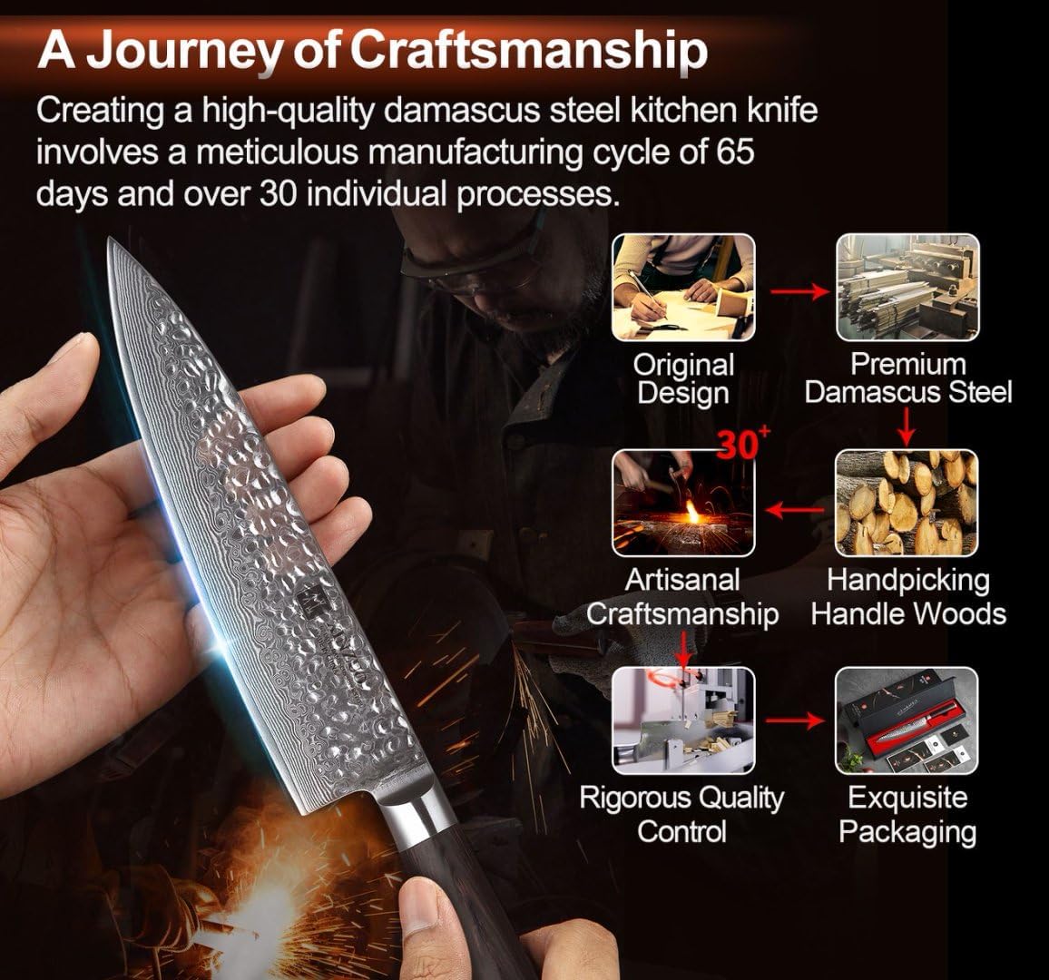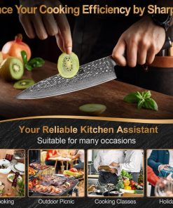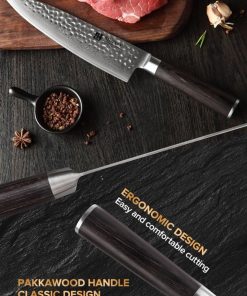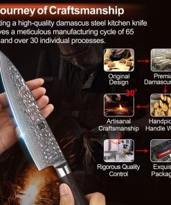 - 【La Recherche de la Perfection】Nos artisans utilisent les procédures opérationnelles les plus strictes pour fabriquer chaque couteau avec soin, dans le cadre d'un cycle de fabrication de 65 jours. Des tests rigoureux permettent de s'assurer que les couteaux de cuisine sont pondérés et équilibrés, ce qui se traduit par une parfaite adéquation entre contrôle et durabilité qui ne vous fatiguera pas, même après de longues heures d'utilisation.